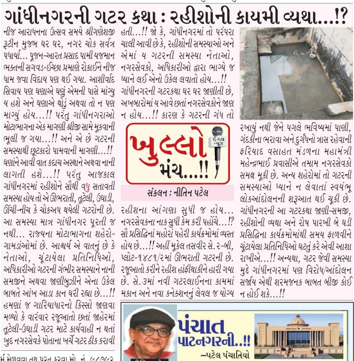 ગાંધીનગરની ગટર કથા : રહીશોની કાયમી વ્યથા ??!!