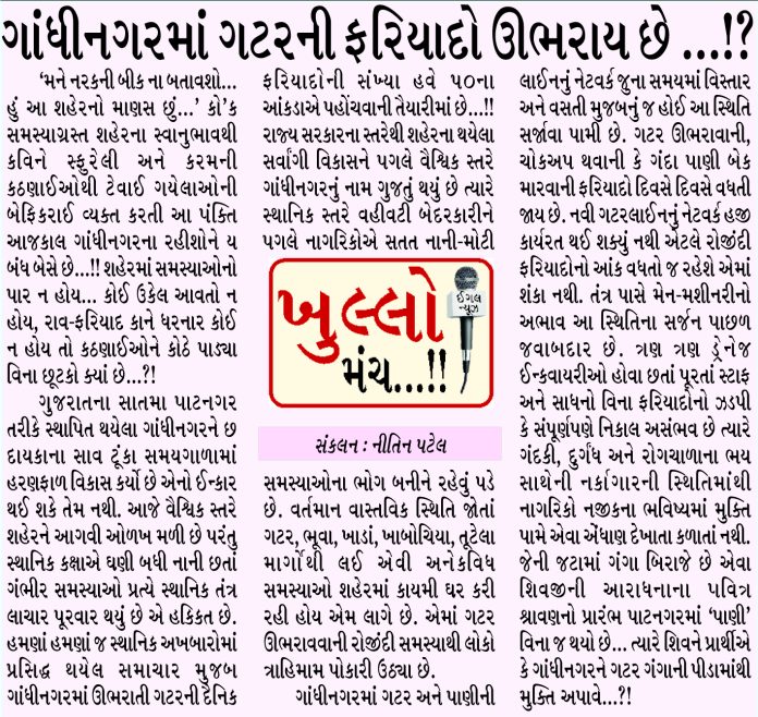ગાંધીનગરમાં ગટરની ફરિયાદો ઉભરાય છે ..!?