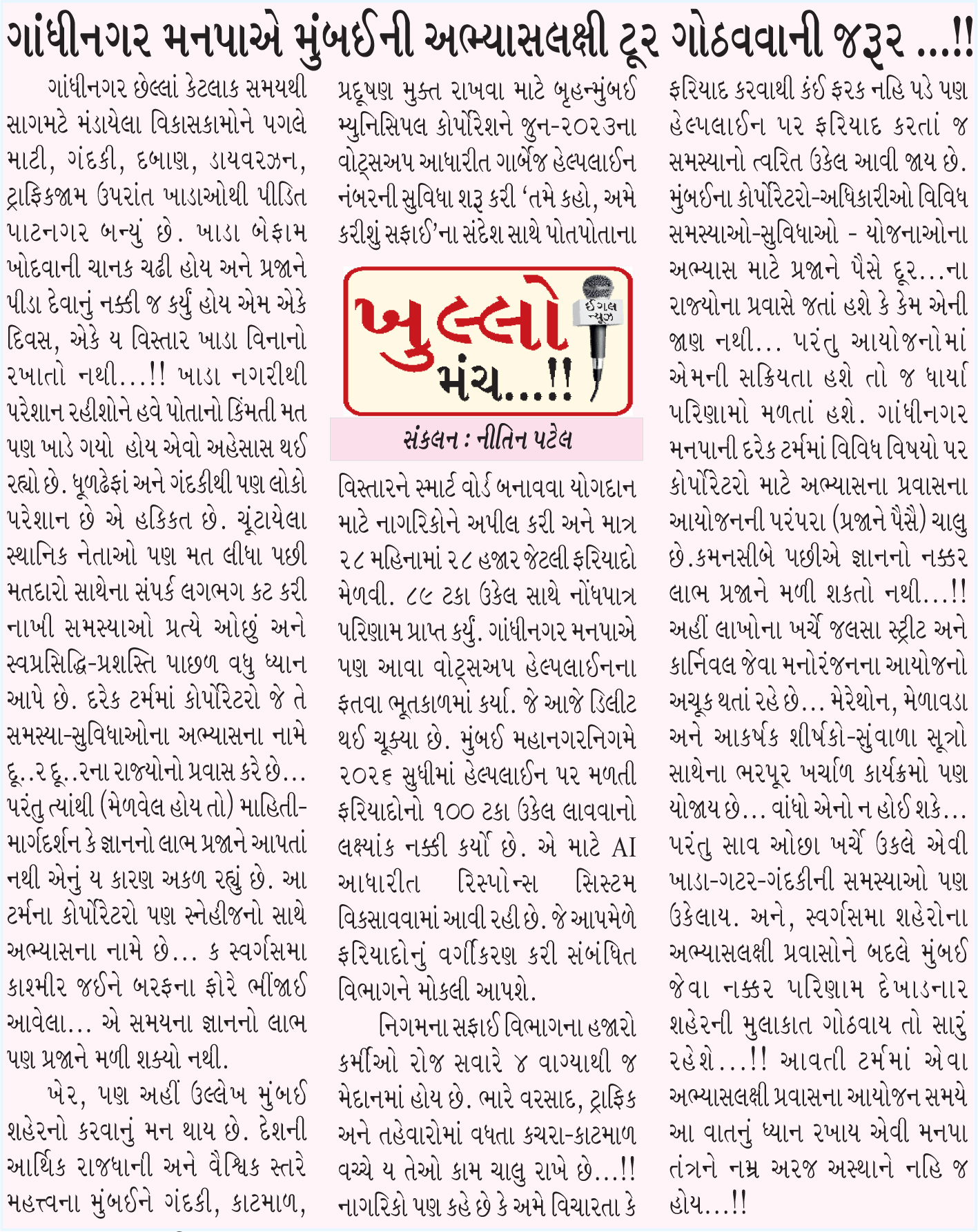 ગાંધીનગર મનપાએ મુંબઈની અભ્યાસલક્ષી ટુર ગોઠવવાની જરૂર છે ..!!