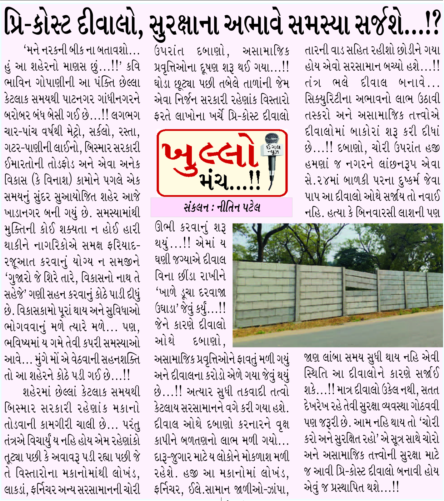પ્રિકૉસ્ટ દીવાલો,સુરક્ષાના અભાવે સમસ્યા સર્જશે..!?