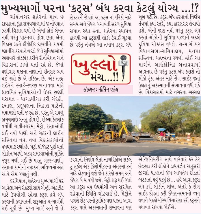 મુખ્ય માર્ગો પરના ‘કટ્સ’ બંધ કરવા કેટલું યોગ્ય…!!!